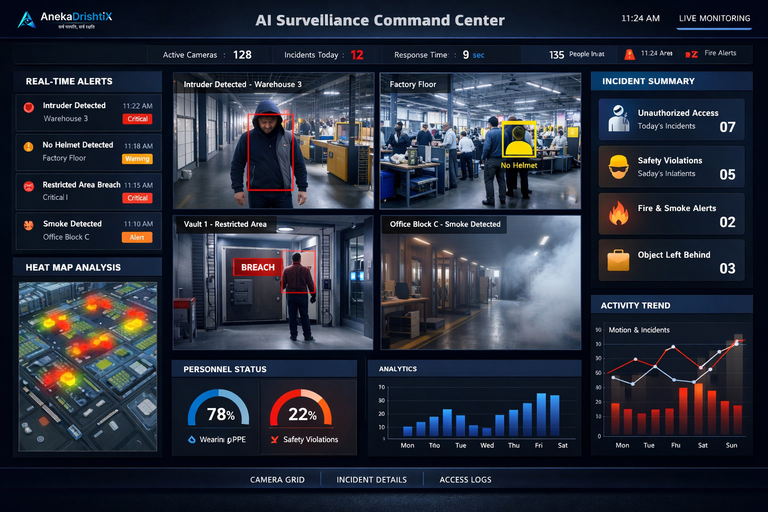 Visualize incident density and risk zones in real-time.